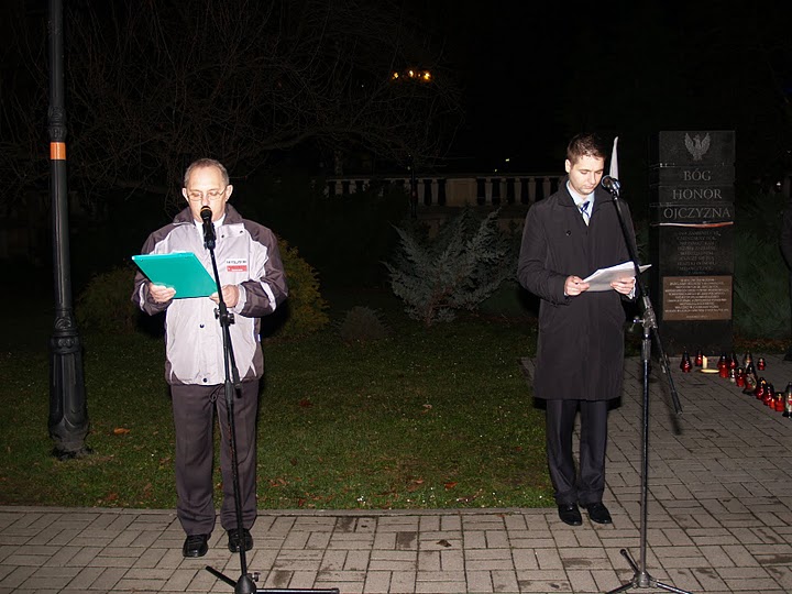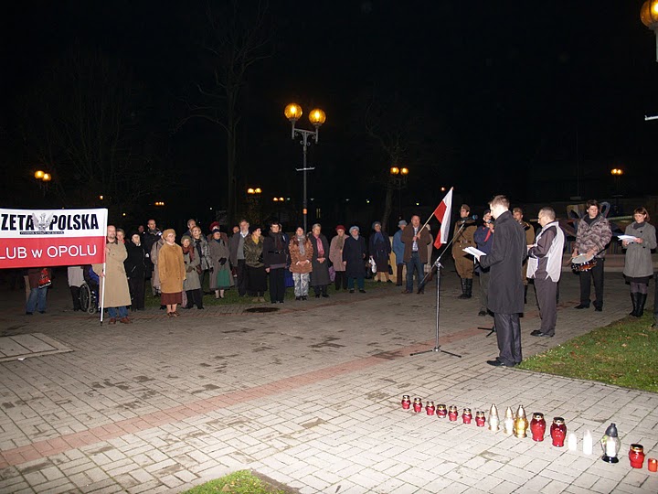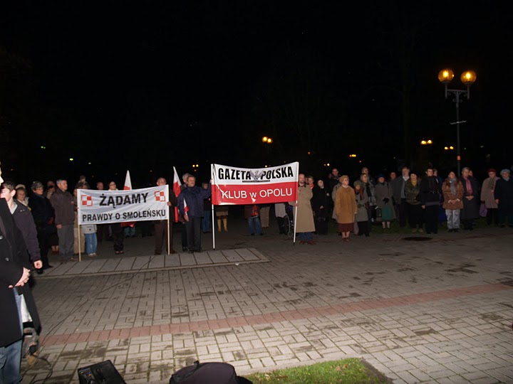 W dniu dzisiejszym tj. 10-listopada 2010 roku , około godz. 17.00 na placu Wolności pod pomnikiem "Żołnierzy Wyklętych" w Opolu, rozpoczęła się uroczystość upamiętniająca poległe pod Smoleńskiem ofiary Tzw."katastrofy Smoleńskiej".