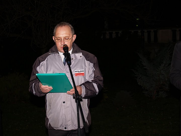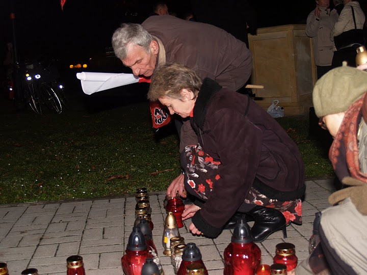 Już na sam koniec uroczystości zebrani pod pomnikiem mieszkańcy składali zapalone znicze ...