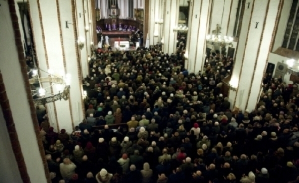 O godz. 19 w Archikatedrze św. Jana Chrzciciela odprawiona została msza św. w intencji Prezydenta RP śp. Lecha Kaczyńskiego i jego Małżonki śp. Marii Kaczyńskiej oraz wszystkich ofiar katastrofy w Smoleńsku. Chętnych do wzięcia udziału w nabożeństwie było tyle, że nie zmieścili się w świątyni.