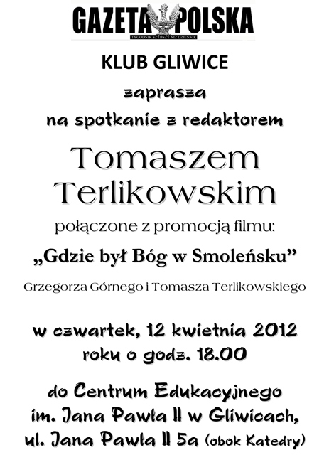 12.04. Red. Tomasz Terlikowski spotkał się z młodzieżą, a następnie z sympatykami "Gazety Polskiej" i Frondy.