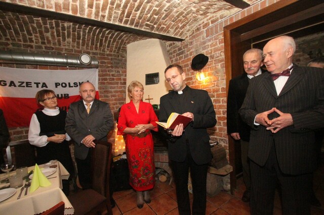 Tradycyjnie już w święto Trzech Króli zorganizowano spotkanie opłatkowe. Tym razem w "Piwnicy". Klub zszedł do podziemia - trochę w przenośni, bo faktycznie jest pielgrzymem nieznajdującym stałego miejsca. Przyzwyczailiśmy się już do tego od 6 lat i nie psuje to nam doskonałego humoru i samopoczucia. Wspaniały nastrój w ciasnej, ceglanej, a przy tym kameralnej "Piwnicy" współgrał z wykutą w skale stajenką Narodzenia Pańskiego. Po raz kolejny gościliśmy delegację Opolskiego Klubu GP. Modlitwę poprowadził, opłatki poświęcił, homilię wygłosił i błogosławieństwa udzielił ks. Waldemar Packner dyrektor "Gościa Niedzielnego". Popisy kulinarne członkiń i członków Klubu - palce lizać. Opolska gitara, pod ręką Sławka, nie pozwoliła fałszować kolęd. Uśmiechnięta i serdeczna obsługa "Piwnicy" wpisała się w opłatkowy nastrój.